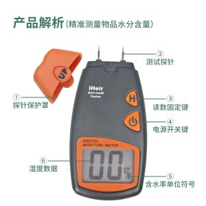 iHeir LCD数显湿度测试仪|快速精准测量木材皮革含水率防霉专用